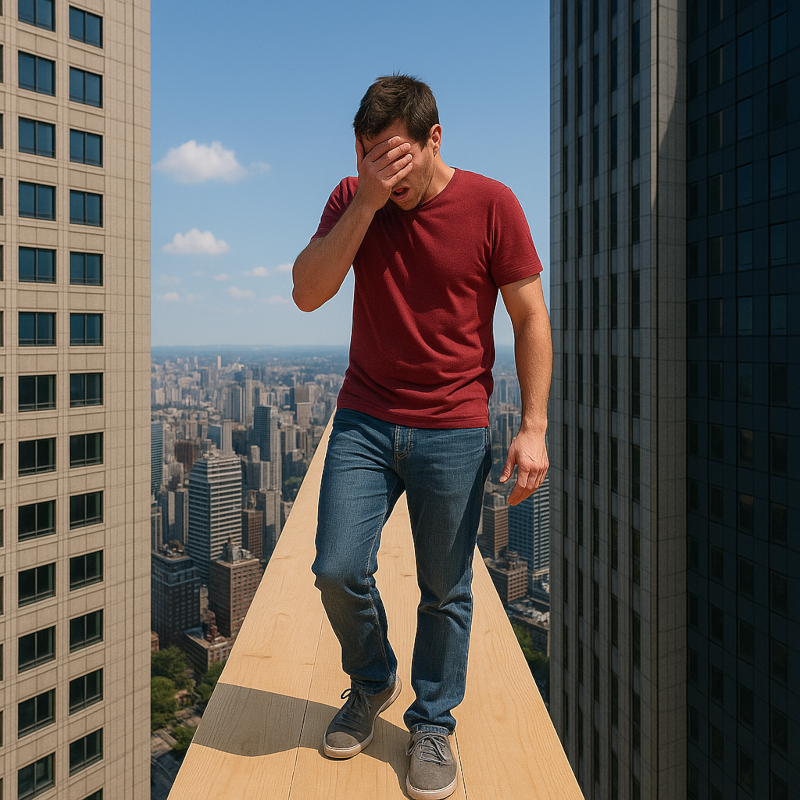 Si vous réfléchissez, la difficulté pour traverser cette planche est la même à 30 centimètres qu'à 250 mètres. La différence c'est le mental qui va envahir votre cerveau par des pensées négatives, sous "prétexte" de vous protéger ou se mettre en panique totale.